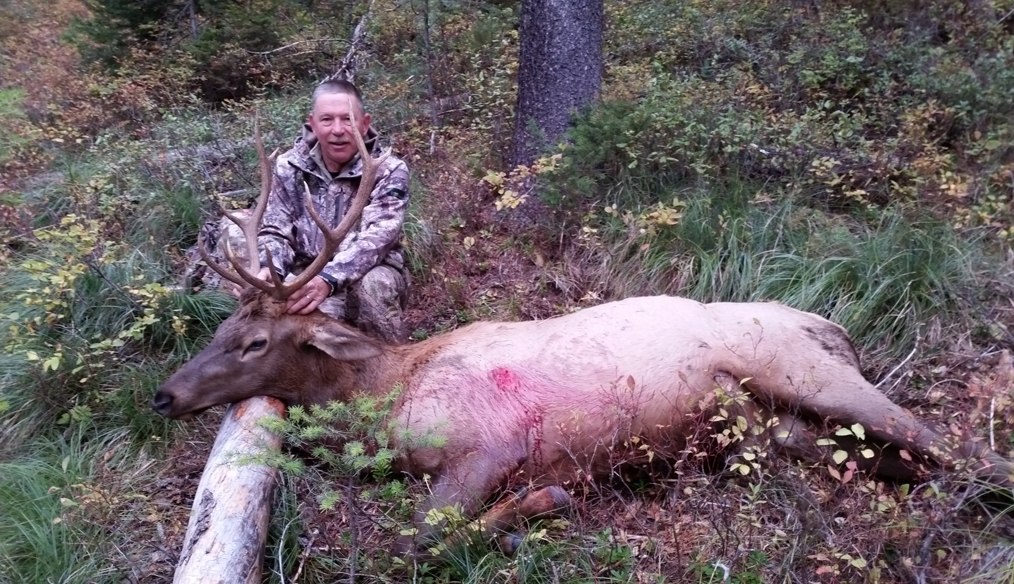 Recently retired, my wife, Jeanne, and I loaded up the truck camper and headed for Big Sky country.  Mid-September, prime time for the elk rut, was our target date to be in the mountains.  We set up camp in a valley meadow by a small trout stream several miles back in on a National Forest Service dirt road.  I spent the first few days hiking ridges looking for elk sign and acclimating to the higher elevation. A freshly-used wallow presented itself on one such hike.  “This would be a good place to sit,” I told myself, based on the warm, sunny days we were experiencing.  I sat two mornings there in my blind and saw nothing.  It was now day five and I was starting to feel a little discouraged with locating elk in the vast wilderness, though I had read that elk are where you find them.
